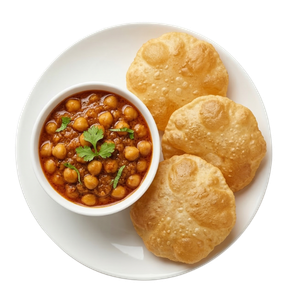 Ingredients: Kabuli chana, onion-tomato masala, refined flour (maida) puri, salt, oil.