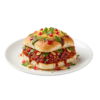 Soft bun, spiced mashed potato, authentic Kutchi dabeli masala, roasted peanuts, pomegranate seeds, nylon sev, tamarind chutney, garlic chutney, butter.
