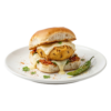 Butter toasted pav, crispy potato vada, garlic chutney, green chutney, cheese slice, special masala, fried green chilli.